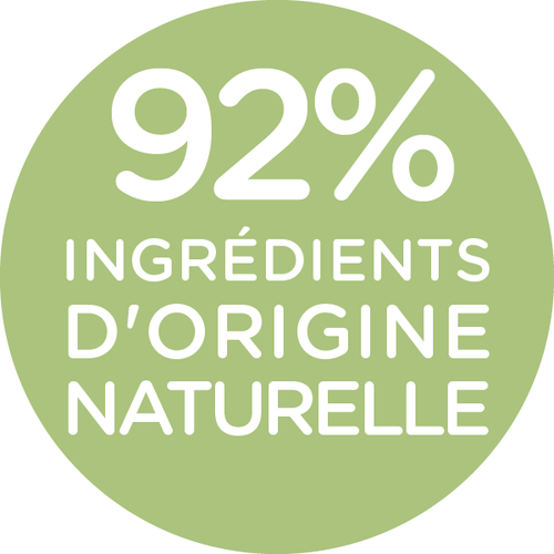 Le soin contient 92% d'ingrédients d'origine naturelle. Et les 8% restant permettent d'obtenir une texture agréable et de protéger le produit sur le long terme.